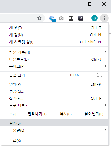 (주소 표시줄에 chrome://settings를 입력하셔도 됩니다.)