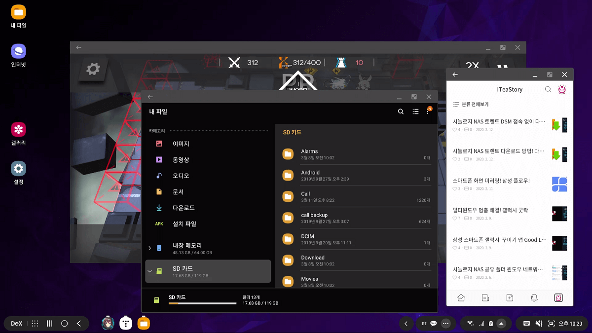 하지만 PC나 Mac에서 삼성 덱스를 사용해서 연결하면 윈도우처럼 얼마든지 창을 열어 멀티태스킹 작업을 할 수 있습니다.