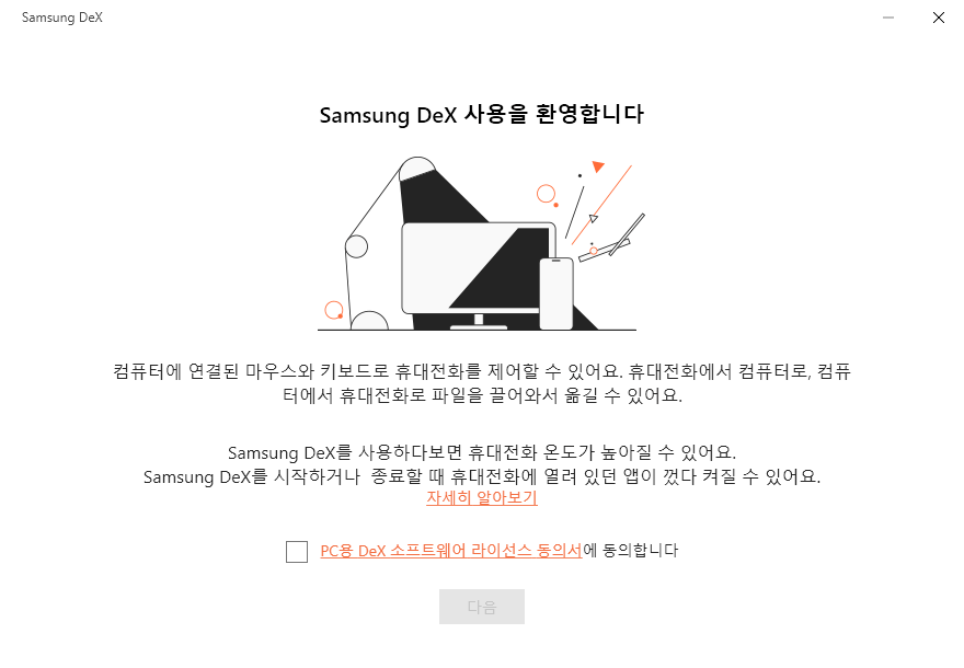 삼성 스마트폰의 앱들을 윈도우나 맥에서 사용할 수 있도록 도와주는 프로그램입니다.