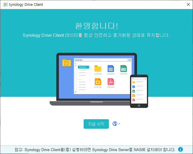 그리고 지금 시작 버튼을 눌러 Synology Drive Client를 설정 해 봅시다.