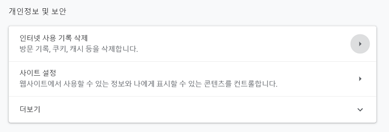 설정창에서 조금만 밑으로 내려가 보면 개인정보 및 보안이라는 항목이 보이실 거예요.