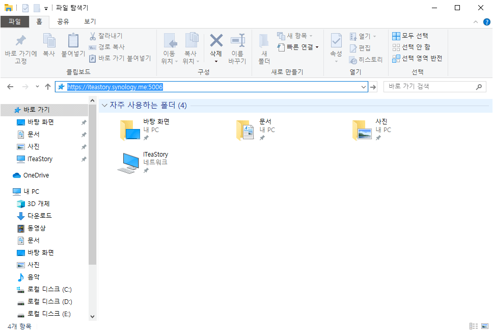 윈도우의 파일 탐색기를 열고 주소 표시줄에 이전에 설정했던 DDNS주소와 방금 설정한 포트 번호를 입력해서 엔터를 쳐 봅시다.