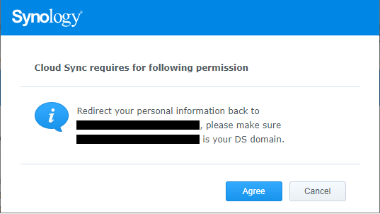 권한 허용을 해 주면 시놀로지 Cloud Sync에서도 권한을 요청합니다.