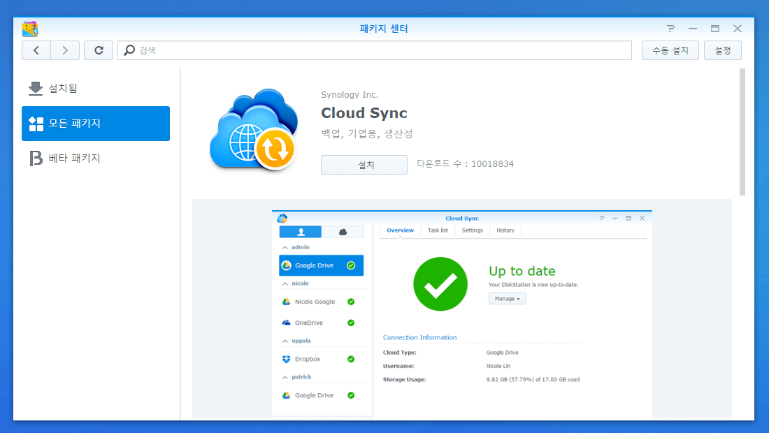 패키지 센터에서 Cloud Sync를 찾아서 설치합시다.