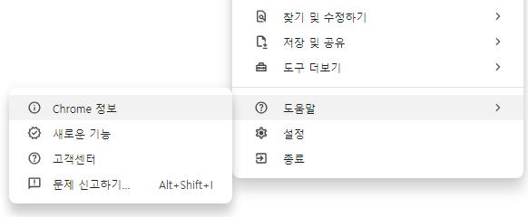 - '도움말'을 선택한 후 'Chrome 정보'를 클릭합니다.