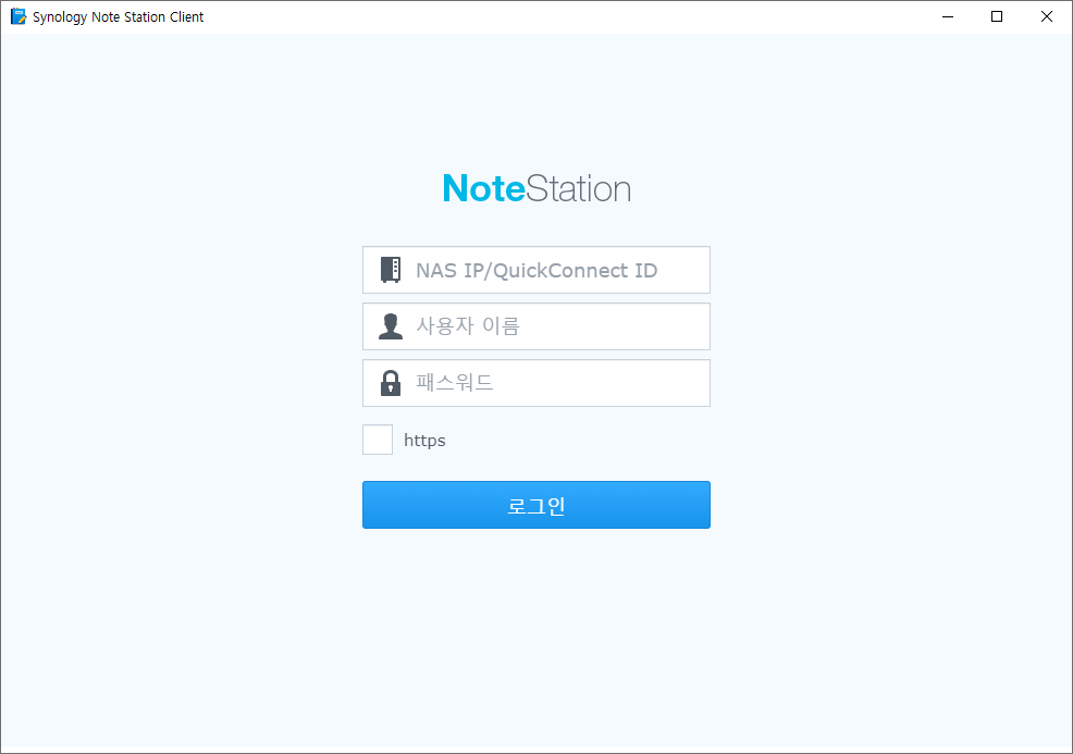 다 입력해서 시놀로지 Note Station에 접속해 보시면 아까 웹상의 DSM에서 봤던 것과 거의 유사한 UI의 Synology Note Station Client를 보실 수 있습니다.