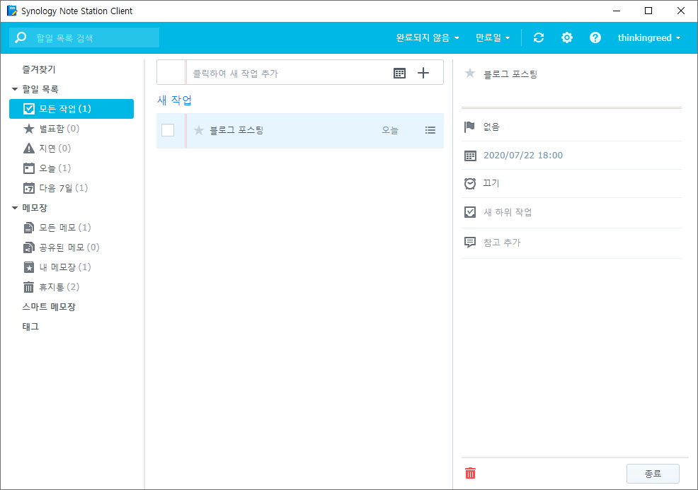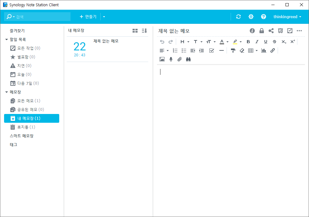 물론 NAS와 동기화가 되므로 언제 어디서나 시놀로지 NAS의 Note Station으로 내 메모나 할 일을 체크하실 수 있습니다.