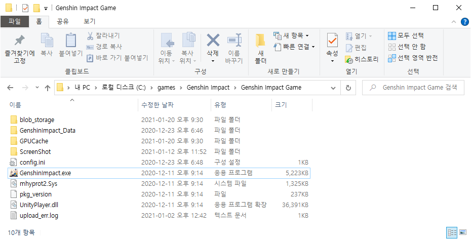 저기서 GenshinImpact.exe 파일이 중요합니다.