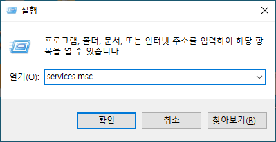 시작 메뉴에서 실행을 실행하시고 services.msc를 입력하시고 확인 버튼을 눌러봅시다.