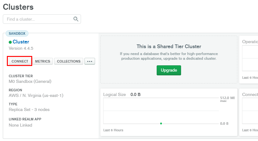 아래와 같이 생성된 클러스터 화면에서 CONNECT 버튼을 클릭합니다.