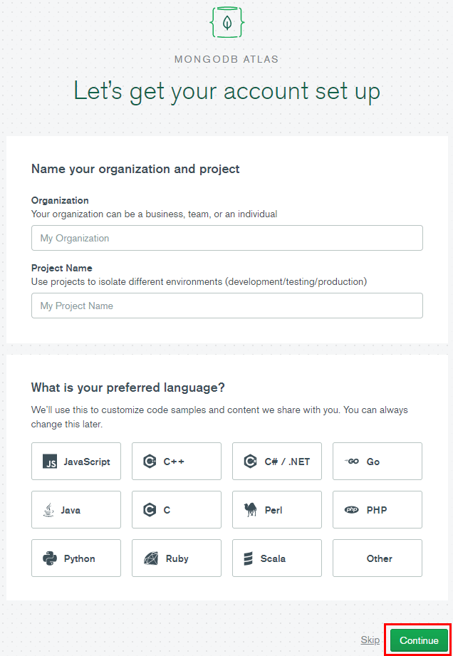 본인이 원하는대로 입력하시고 Continue 버튼을 클릭합니다.