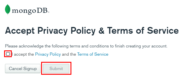 I accept the Privacy Policy and the Terms of Service 체크