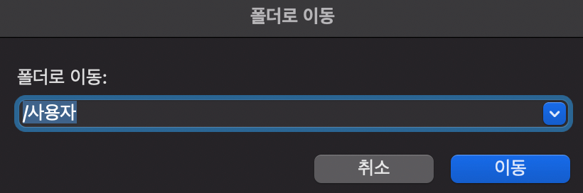 - 상단 메뉴 막대에서 이동 - 폴더 선택 후 /사용자 입력