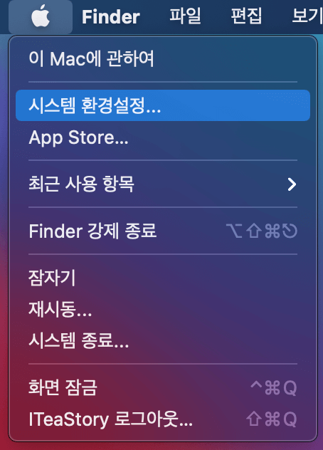 - 좌측 상단의 Apple 메뉴에서 시스템 환경설정 열기