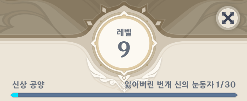 번개 신의 눈동자를 모두 모아서 공양해보면 9레벨까지 올릴 수 있고 1개가 남게 됩니다.