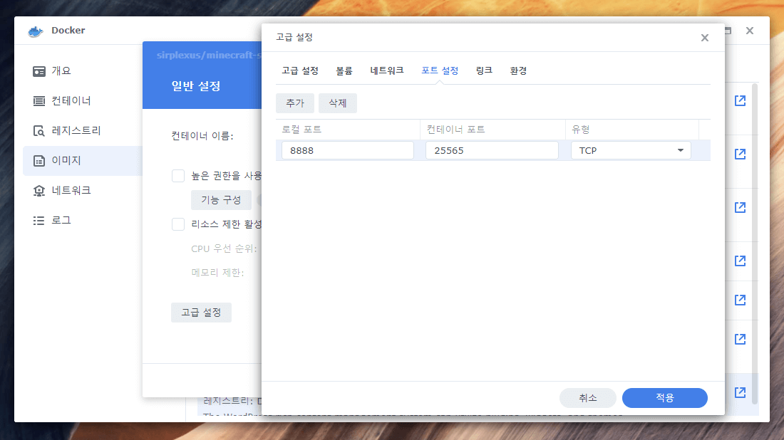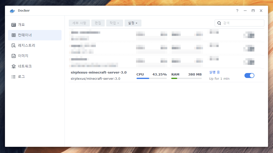 이전 포스팅에서 NAS에서 Docker를 사용해서 마인크래프트 서버를 열어봤는데요