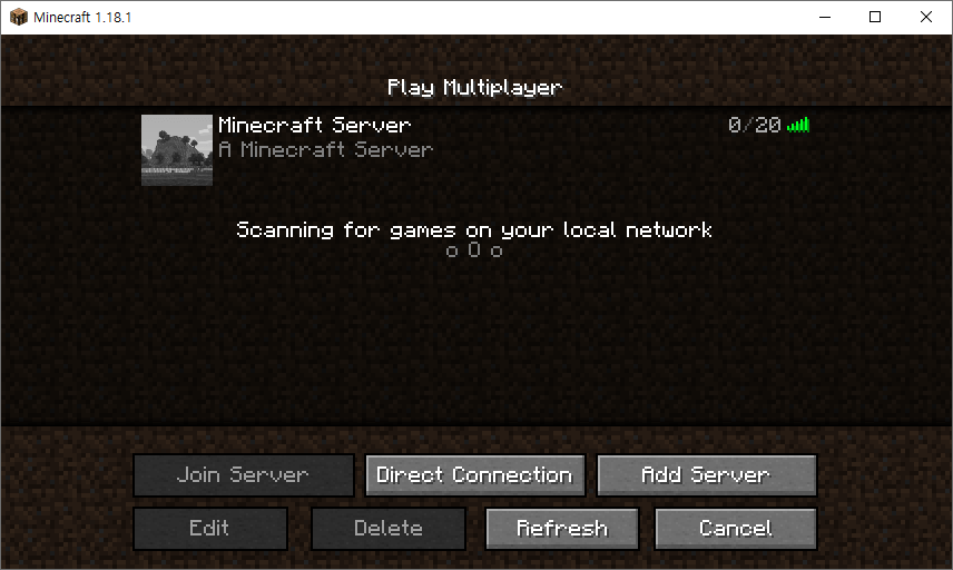 마인크래프트를 실행하고 Multiplayer를 클릭해서 서버 접속 화면으로 가봅시다.