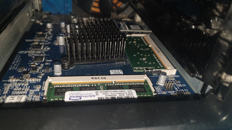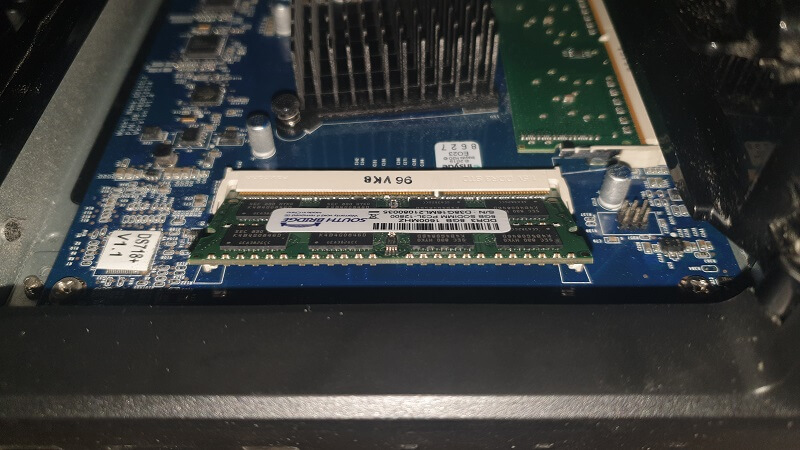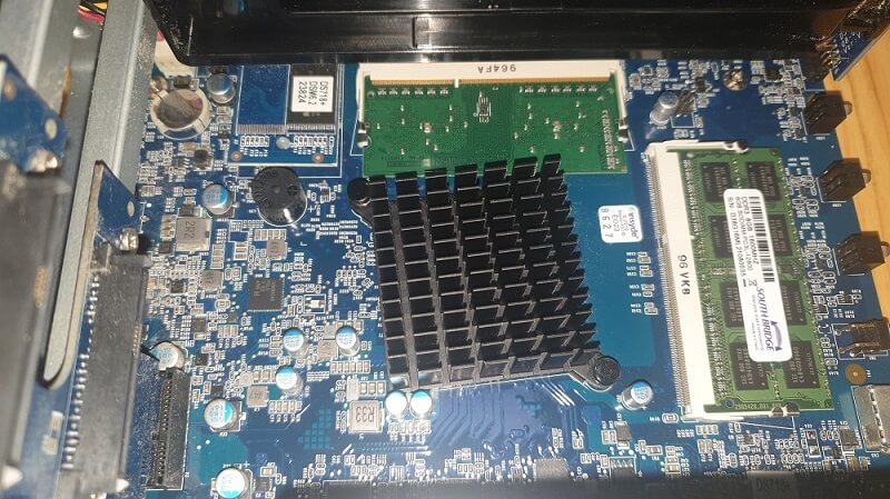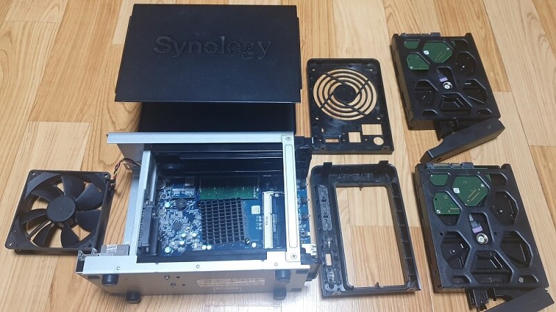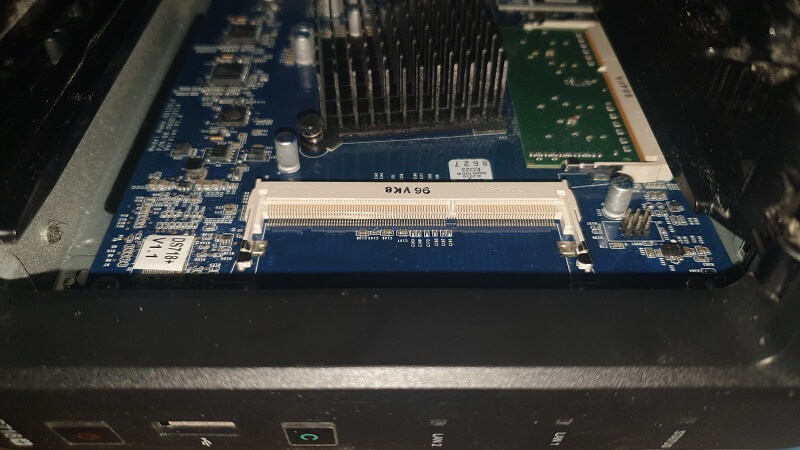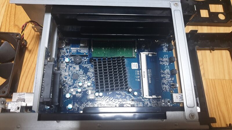 NAS를 종료해주시고 디스크를 제거해주시면 우측 측면에 메인보드가 보이실 거예요.