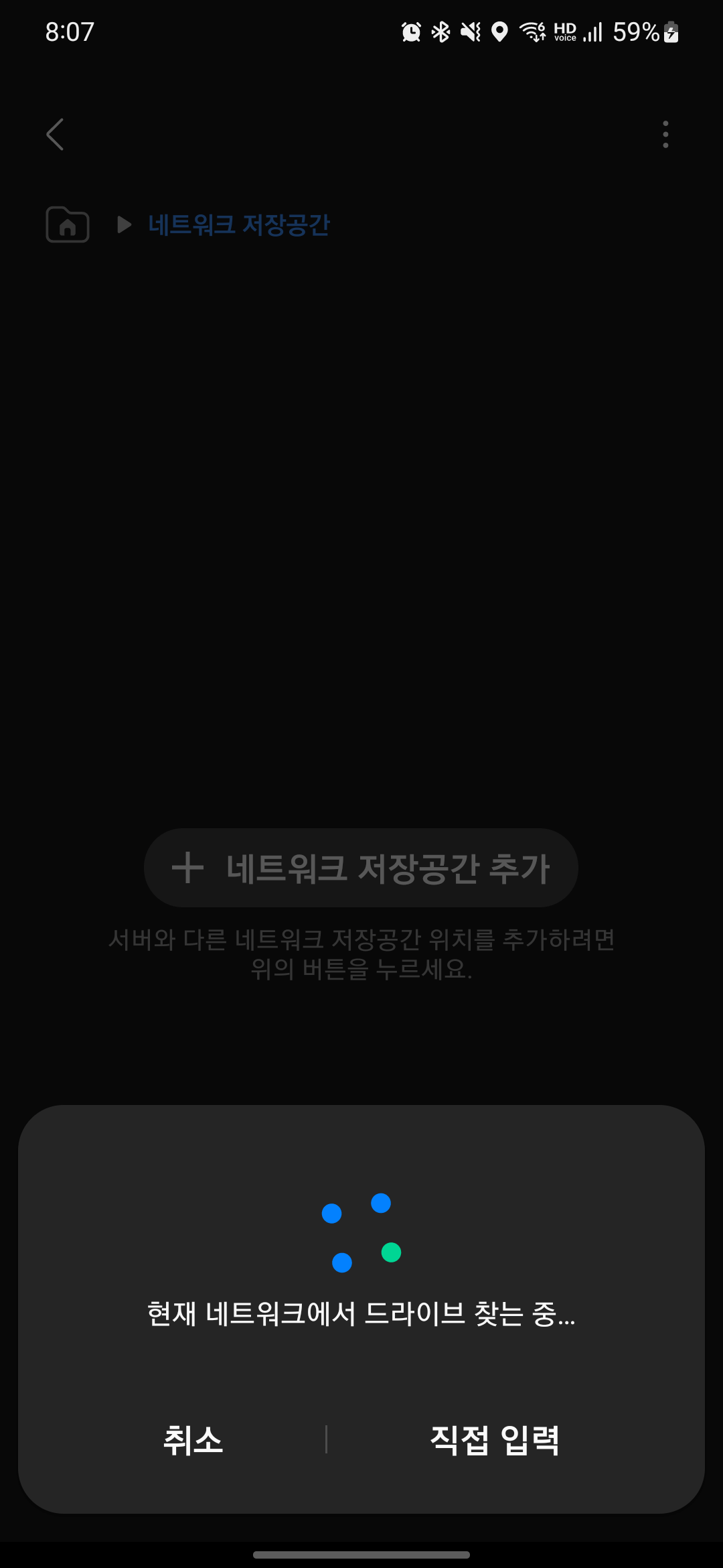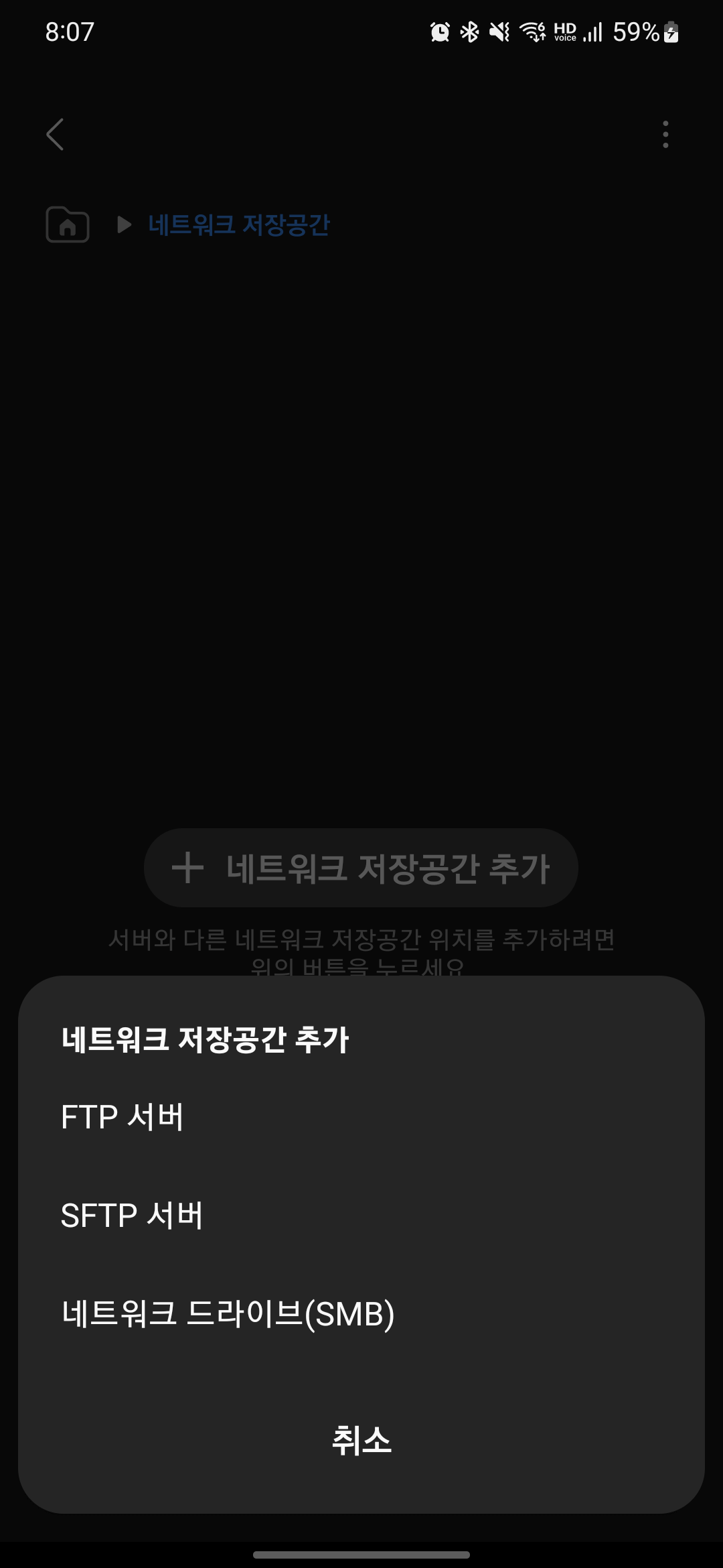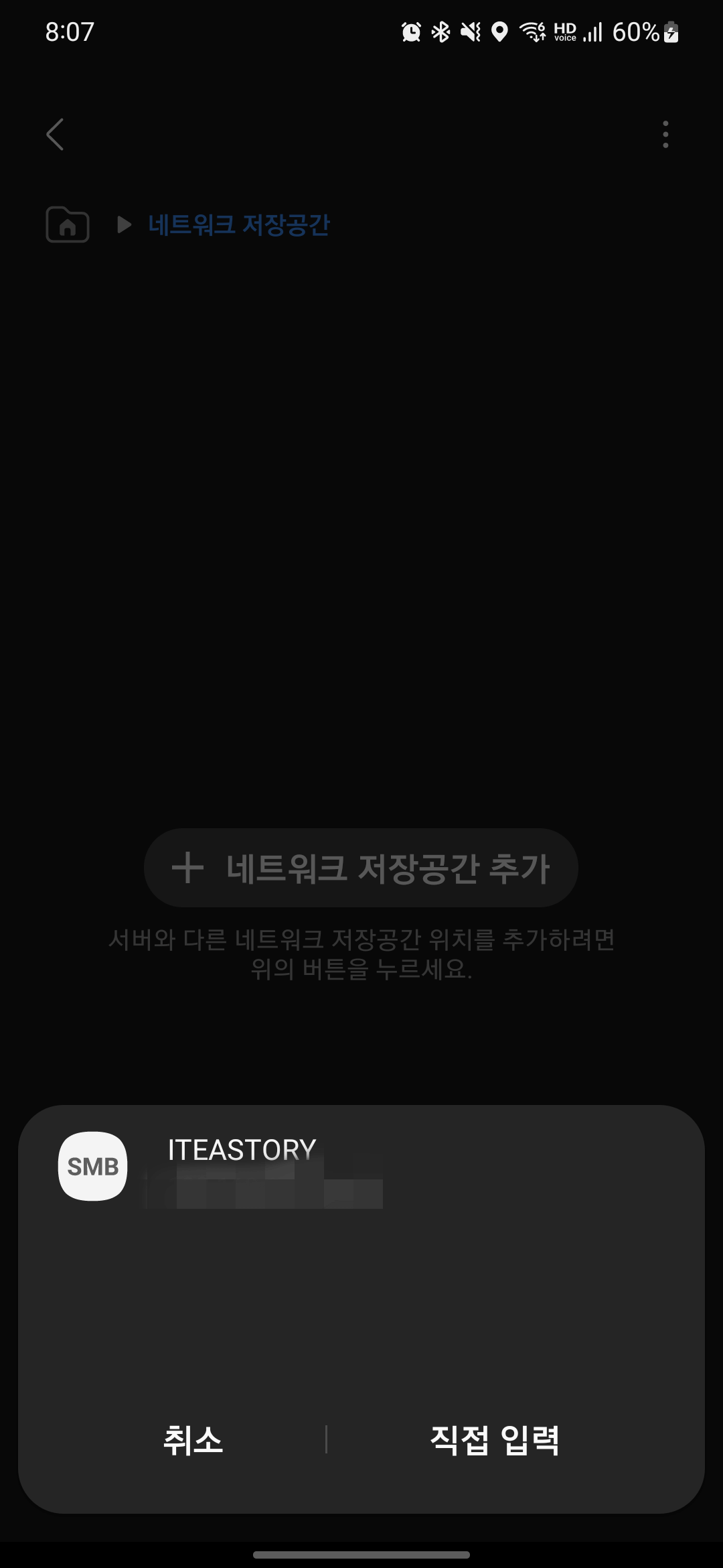 네트워크 저장공간 추가 버튼을 터치하면 팝업 창이 하나 뜹니다.