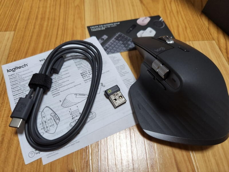 MX Master 3와 MX Anywhere 3를 고민할 때도 for mac을 고려 안 했던 건 다른 건 다 같은데 수신기와 USB 케이블을 안 줘서였는데 이번 MX Master 3S는 둘 다 포함되어 있어서 구매 결정을 더 빨리 내렸어요.