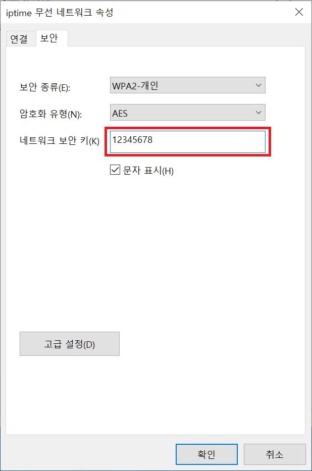 바로 아래에 있는 문자 표시를 클릭하면 숨겨져 있던 네트워크 보안 키를 볼 수 있습니다.