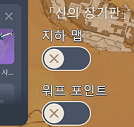그러고 보니 워프 포인트와 지하 맵으로 이어지는 동굴 입구 포인트를 일괄적으로 켜고 끌 수 있게 버튼을 따로 만들어 놨네요!