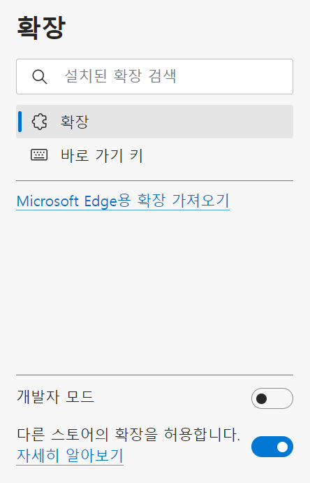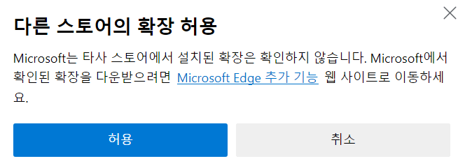 만약 허용해 줬던걸 철회하고 싶으시다면 아까 봤던 확장 관리 페이지의 좌측 하단에 다른 스토어의 확장을 허용합니다.라는 버튼이 있는데 이걸 해제해 주시면 됩니다.