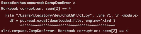 내 시간을 많이 잡아먹은 에러 xlrd.compdoc.CompDocError: Workbook corruption: seen[2] == 4