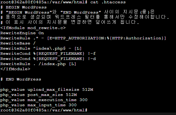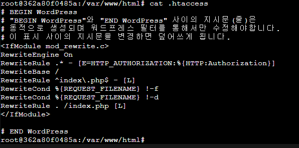 우리가 수정해야 할 파일은 .htaccess 파일입니다. wp-config.php 파일이 있는 디렉토리에서 작업하면 됩니다.