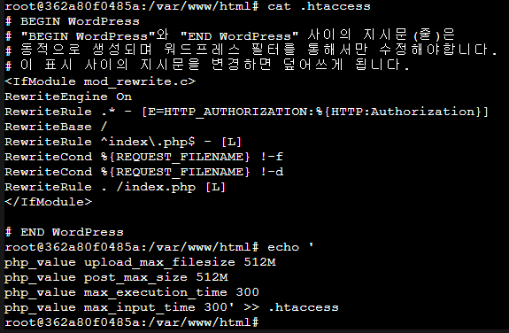 그리고 아래 명령어로 업로드 용량을 늘리는 설정을 추가합니다. 그대로 복사해서 붙여 넣으시면 됩니다.
