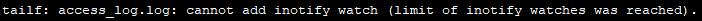 tailf: cannot add inotify watch (limit of inotify watches was reached)