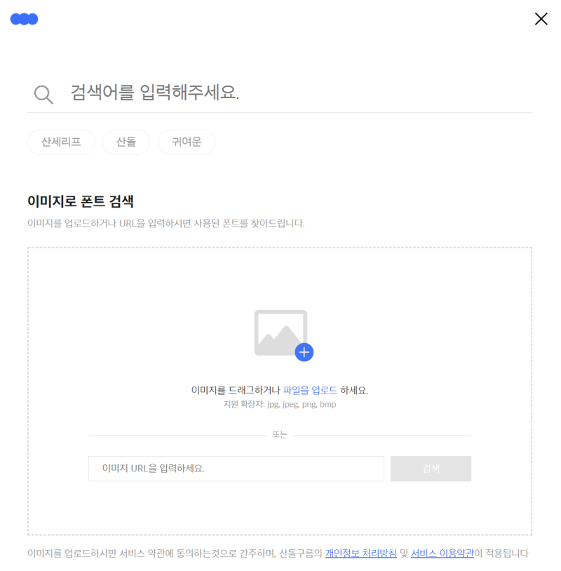 WhatTheFont에 들어가 보면 산돌구름처럼 이미지를 업로드하거나 이미지의 URL을 입력하라는 메시지가 있습니다.