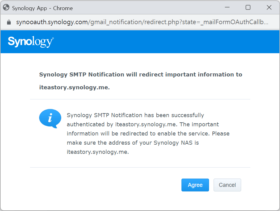 서비스 활성화를 위해 Synology NAS의 주소가 맞는지 확인하라는데 맞겠죠?