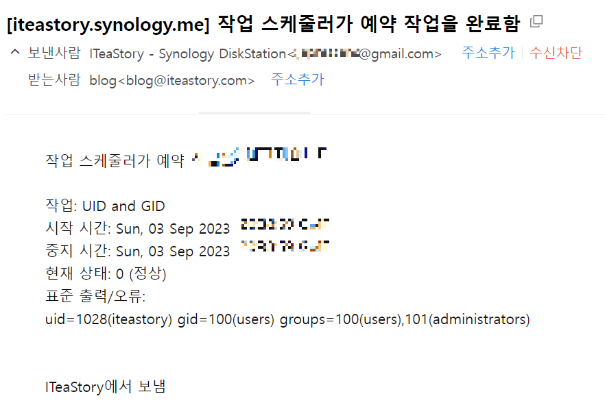 DSM에서 실행한 작업이 제대로 실행되었다면 내가 보내도록 설정한 주소로 메일이 갔을 것입니다.