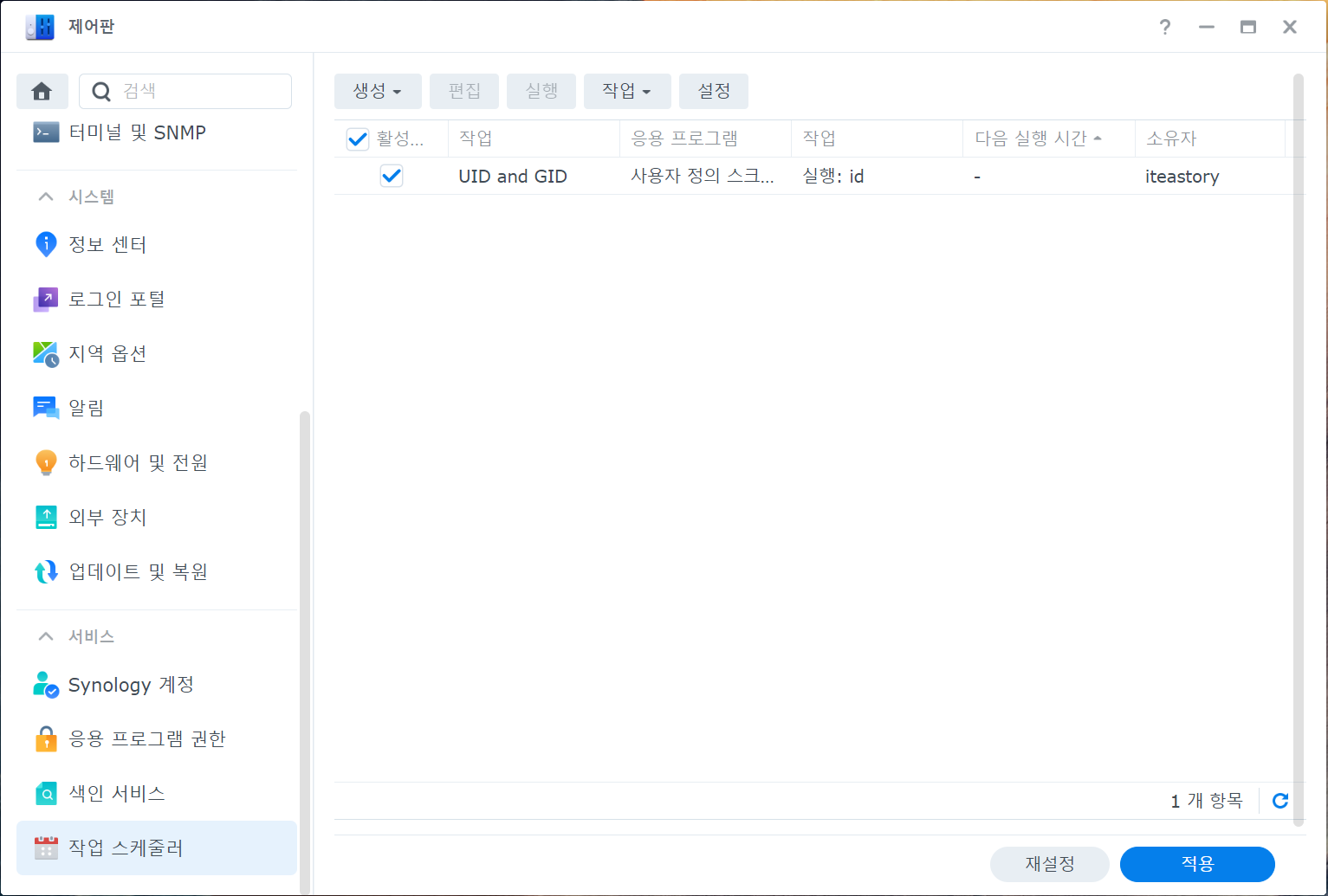 2) Synology NAS 작업 스케줄 생성