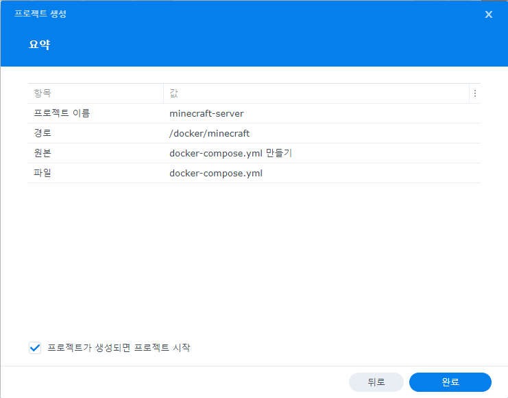 저는 docker 공유폴더를 생성하고 그 아래에 minecraft라는 디렉토리를 만들어서 선택해 줬습니다.