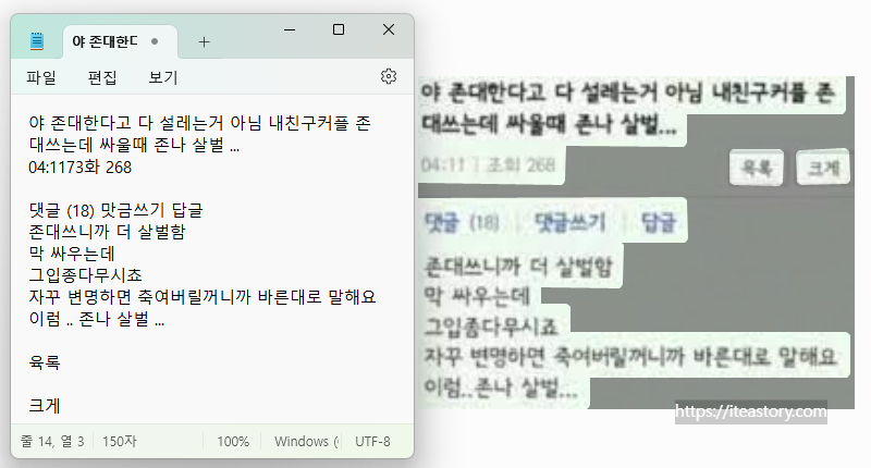 또는 원하는 텍스트만 마우스 드래그로 긁은 뒤 CTRL + C로 복사할 수도 있습니다. - 이제 복사한 텍스트를 내가 원하는 곳에 붙여 넣기만 하면 완료!