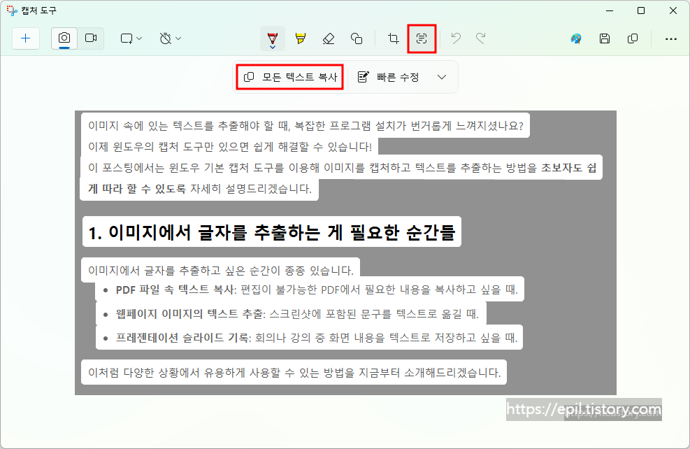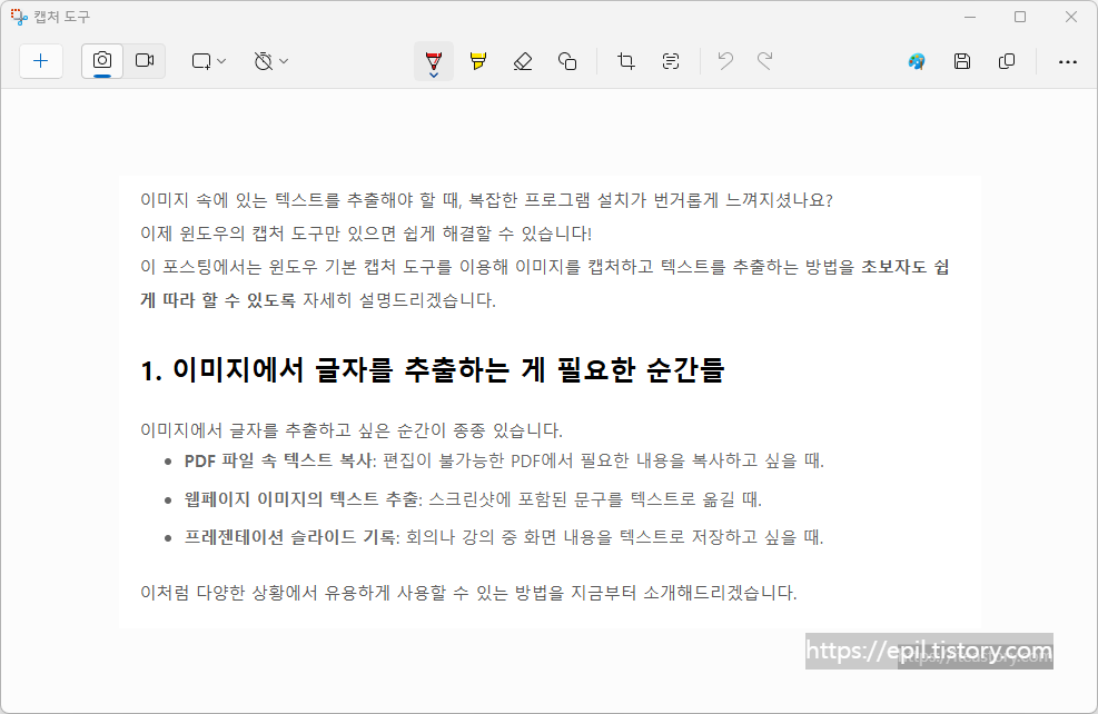 2. 윈도우 캡처 도구로 텍스트 추출하기